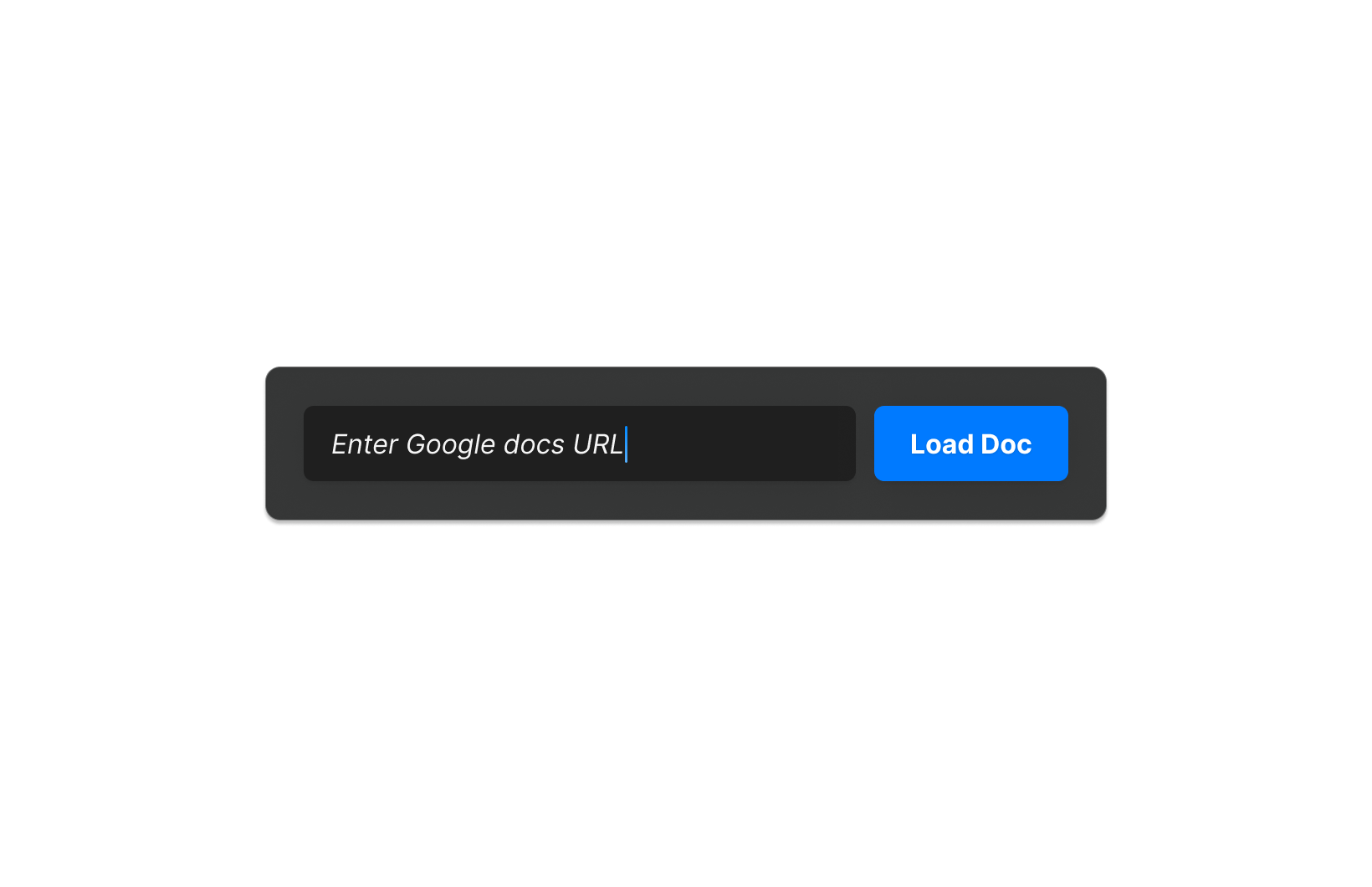 The user enters a Google Docs URL into the admin tool. Using Google Auth and the Google Docs + Drive APIs, the tool reads and processes the document contents.