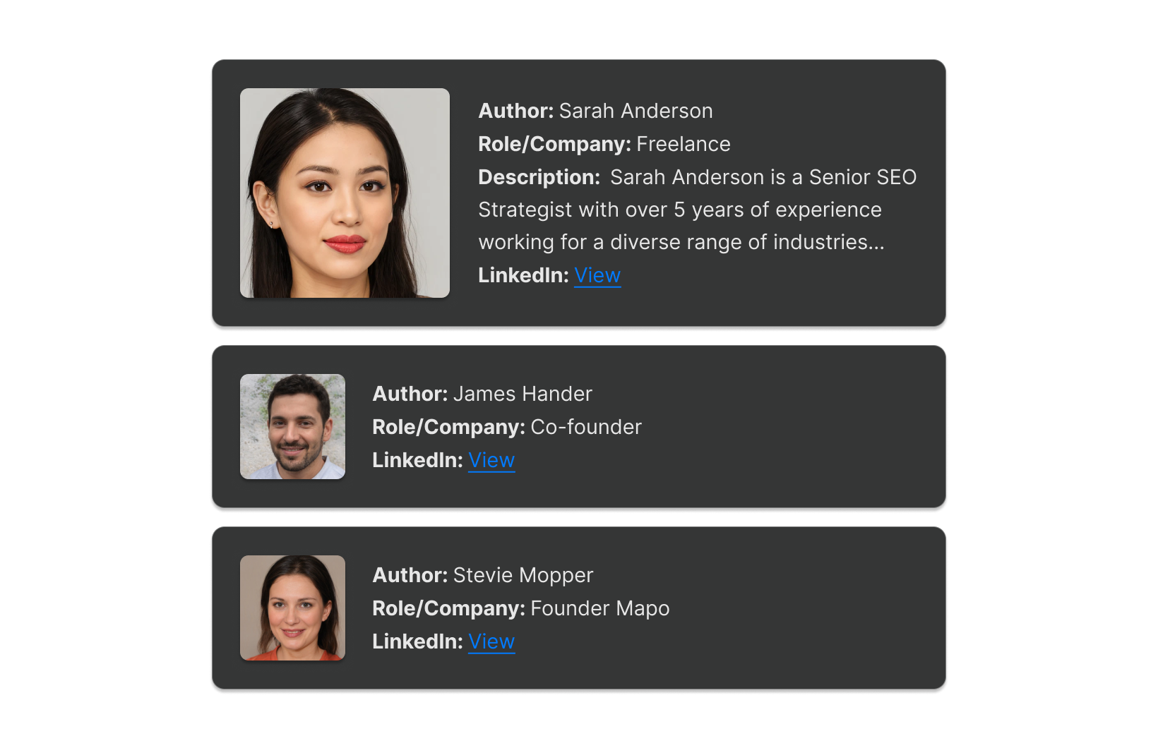 - Creating author pages